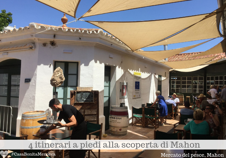 Attraversi plaça d’el Princep e sei in plaça d’Espanya, delimitata a destra dal Mercat de Pescados, costruito su un antico baluardo del XVIII secolo. A sinistra i banchi dove i pescatori vendono i prodotti più freschi del mare, a destra punto di ritrovo con tapas e specialità, vini e birre da comprare e consumare ai tavoli interni o esterni. Il mercato del pesce è uno dei luoghi più cosmopoliti e vivaci di Mahon, estate e inverno, a pranzo e a cena. Dove lasciare spazio ai propri sensi. Buona passeggiata!