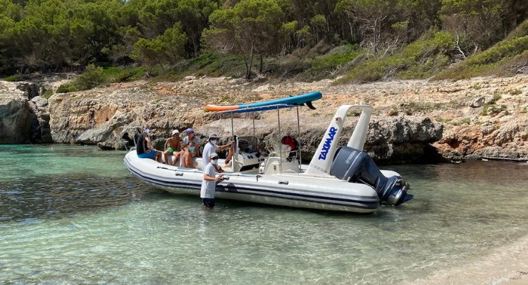 Il gommone possiede un motore da 250 cavalli ma la navigazione viene effettuata a basse velocità in modo da ammirare gli angoli più spettacolari. I due membri dell’equipaggio, comandante e marinaio, sono pronti a mostrarti grotte e insenature nonché a darti consigli e informazioni su questo bellissimo tratto di costa minorchina.
