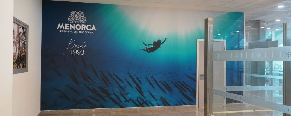 A partire da mercoledì 21 maggio, la sala arrivi dell’aeroporto di Minorca ospita una grande fotografia che dà il benvenuto ai visitatori informandoli che stanno entrando in una Riserva della Biosfera.